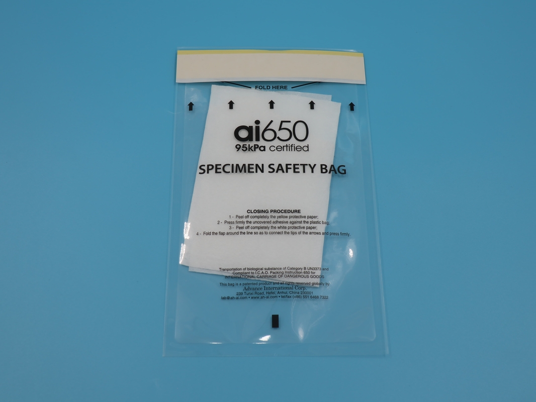 Nom du produit | Sac à spécimens pour matières biologiques de transport médical biodégradable à fermeture éclair personnalisée AI 650 95kpa |