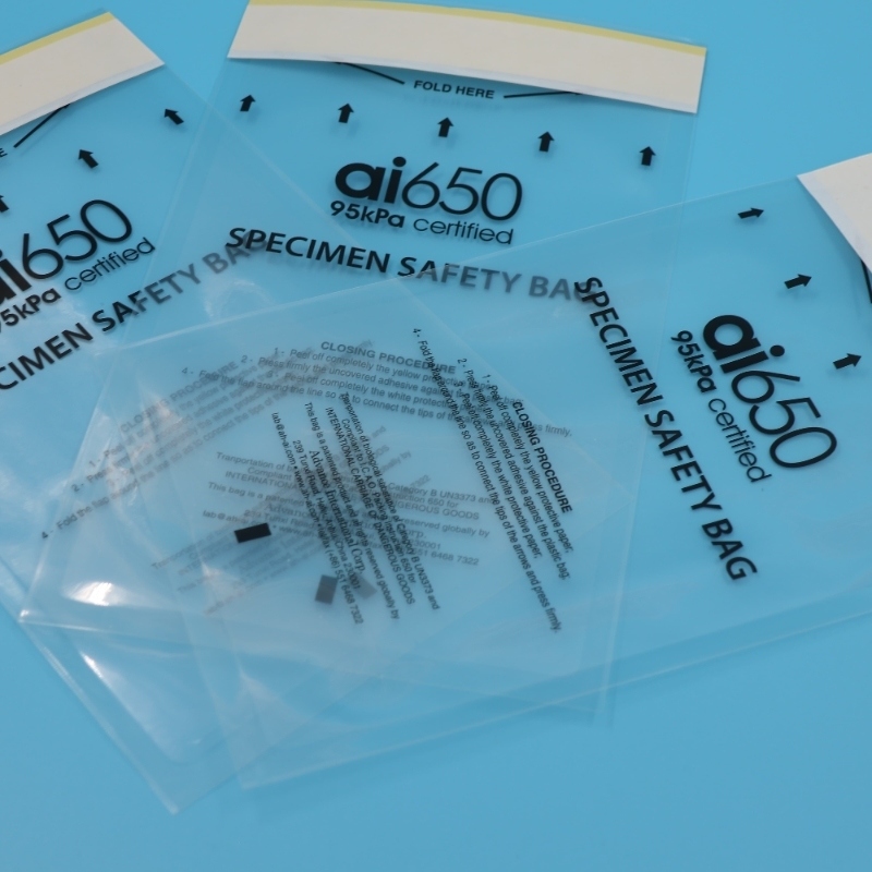Nom du produit | AI 650 95kpa Fermeture à glissière personnalisée Biodégradable Transport médical Sac de spécimens biohazard |