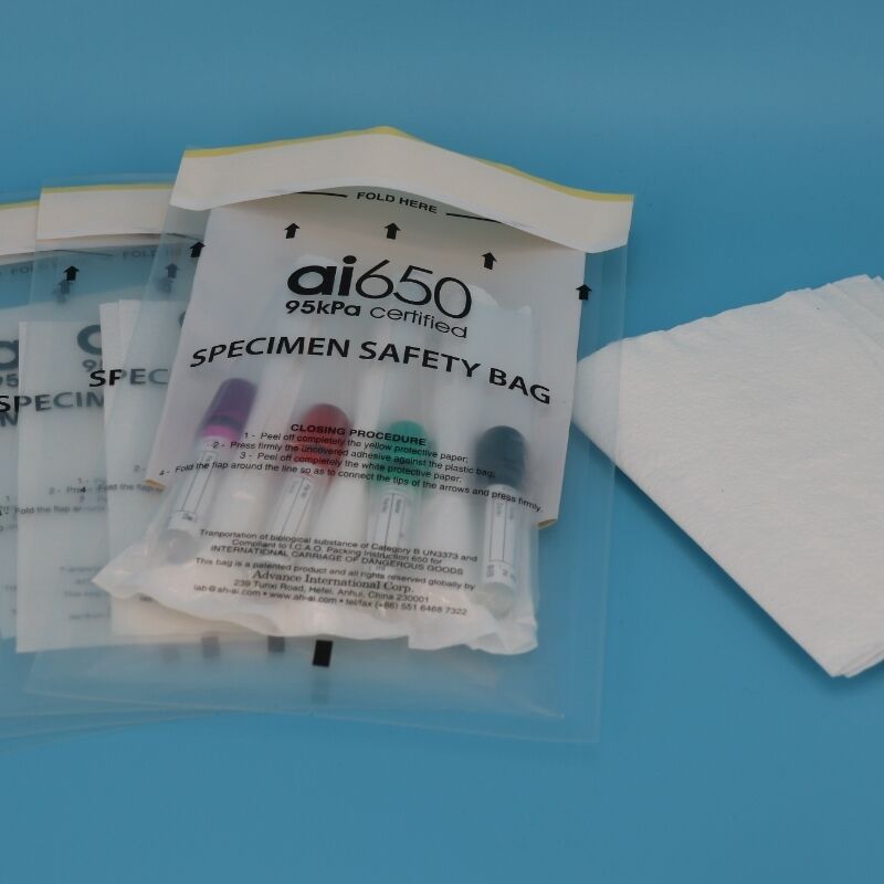 Nom du produit AI 650 95kpa Fermeture à glissière personnalisée Biodégradable Transport médical Sac de spécimens biohazard