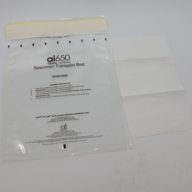Nom du produit AI 650 95kpa Sac pour spécimens médicaux biodégradable avec fermeture éclair personnalisée pour le transport de matières dangereuses